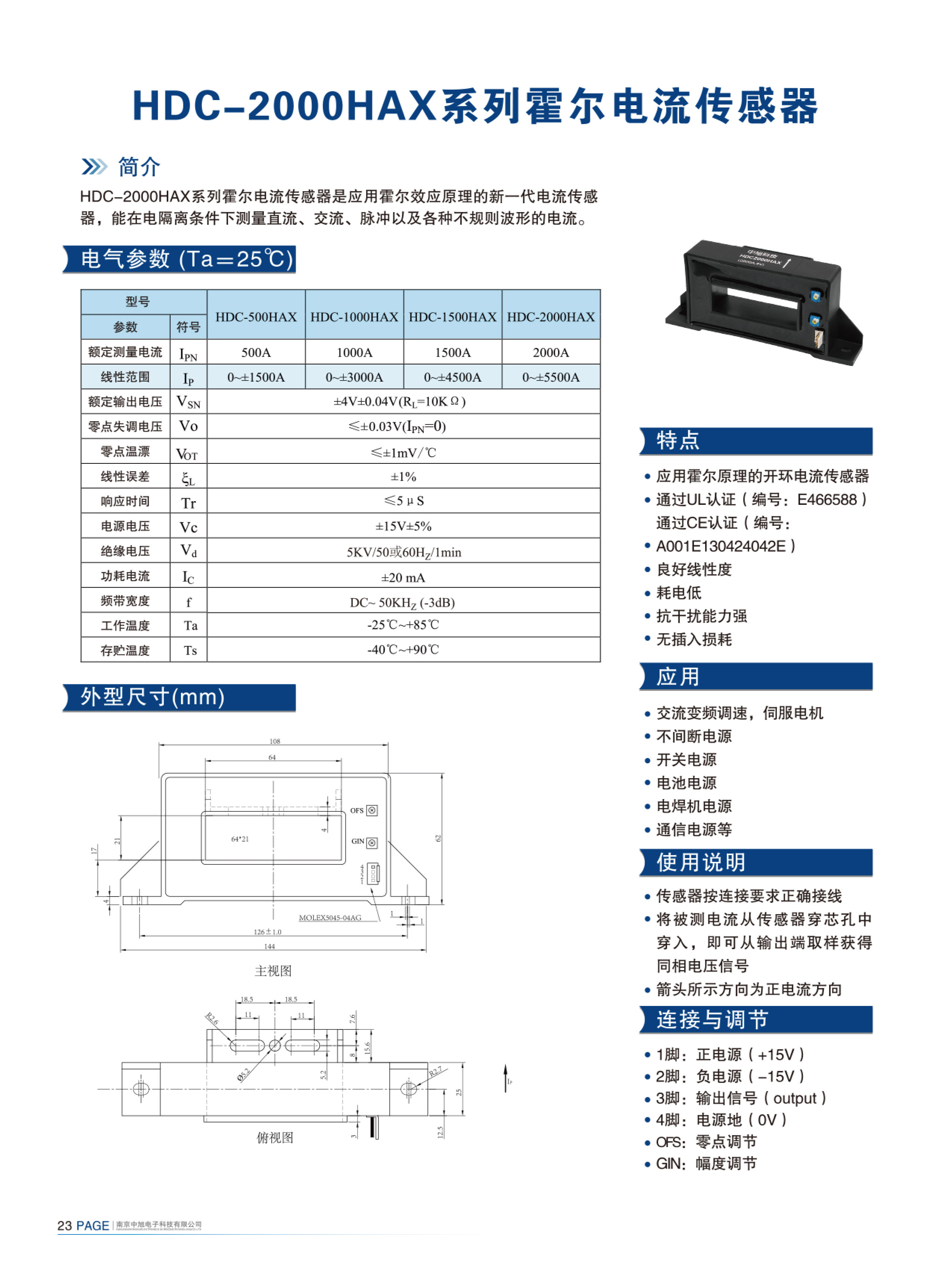 HDC-2000HAX系列霍爾電流傳感器是應用霍爾效應原理的新一代電流傳感器,能在電隔離條件下測量直流、交流、脈沖以及各種不規(guī)則波形的電流。